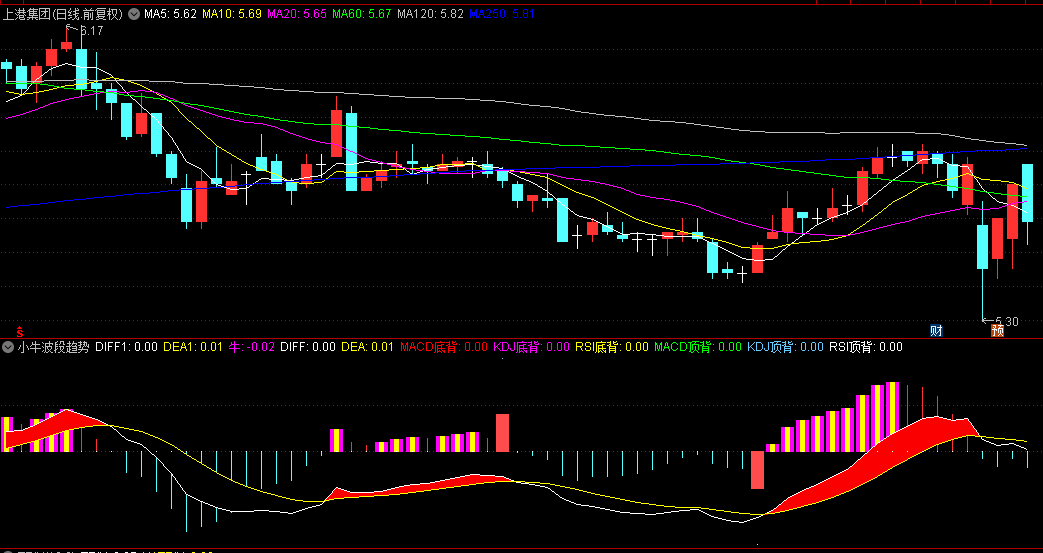 当粉色与黄色柱状线同步放大时,表明多头动能强劲,符合道氏理论"趋势自我强化"特征。