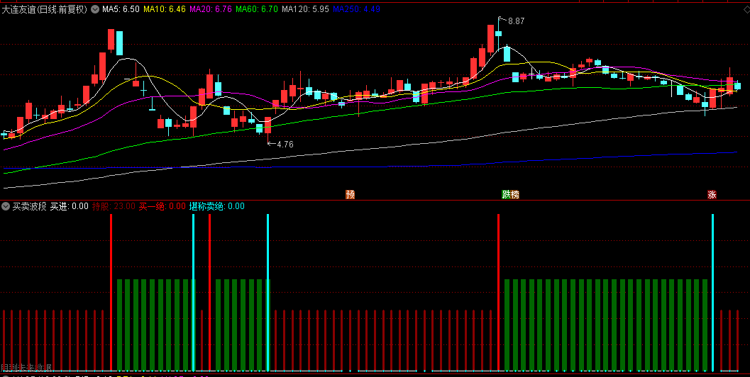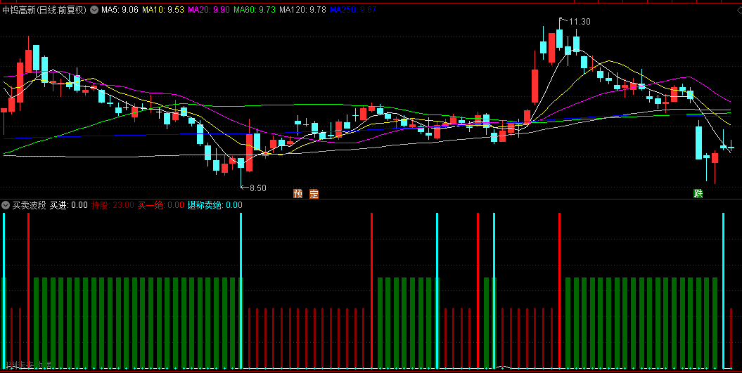 通达信【买卖波段】副图指标,波段操作,进场和离场点都简单可见!