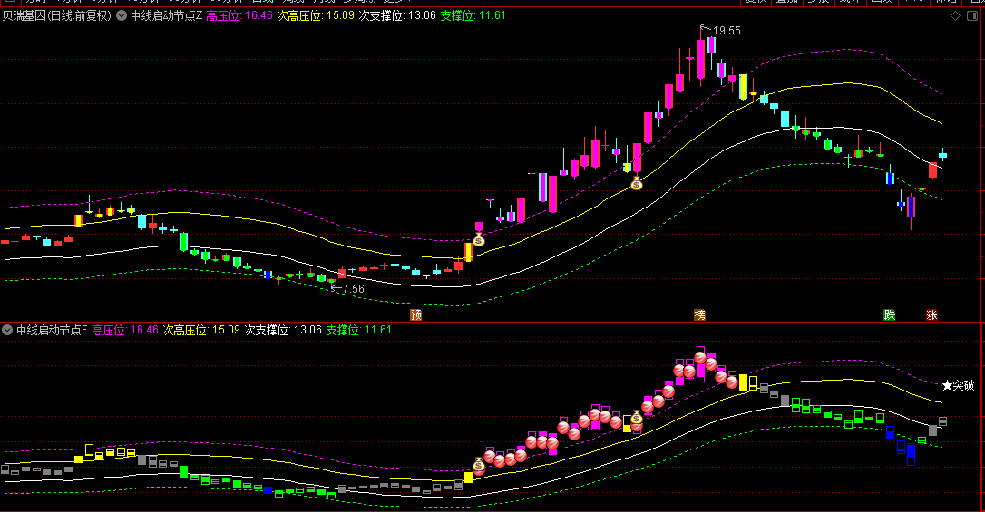 当价格突破次高压位时,系统自动触发趋势强度升级,符合"突破交易"的基本原则。