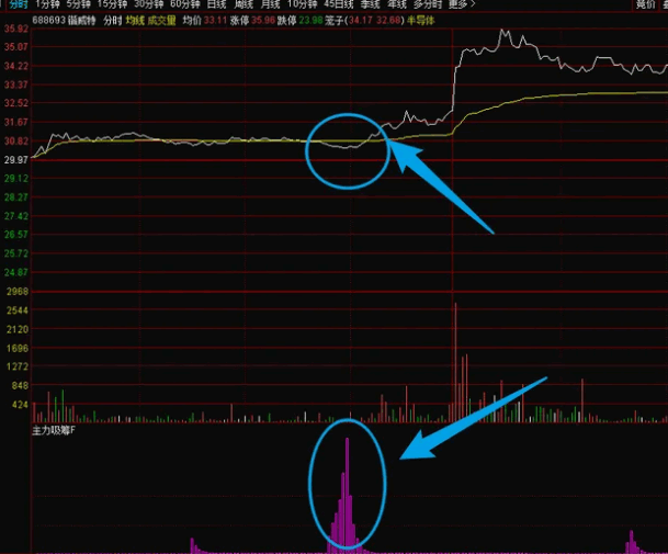 最近每天刷视频,总是刷到一个产业链马脸主播在展示一个分时主力吸筹指标,吹的神乎其神。