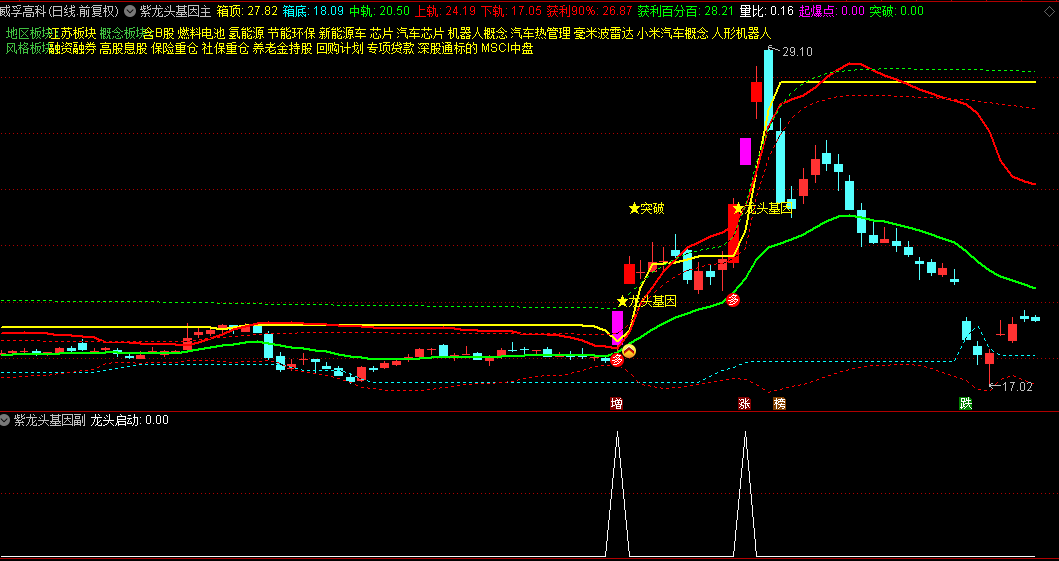 【紫龙头基因】主图/副图/选股指标,前有龙头基因+后有突破信号,是加仓机会!