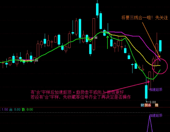 独创【加速全过程】主图+副图指标,加速赶顶全过程,三线合一线先关注!