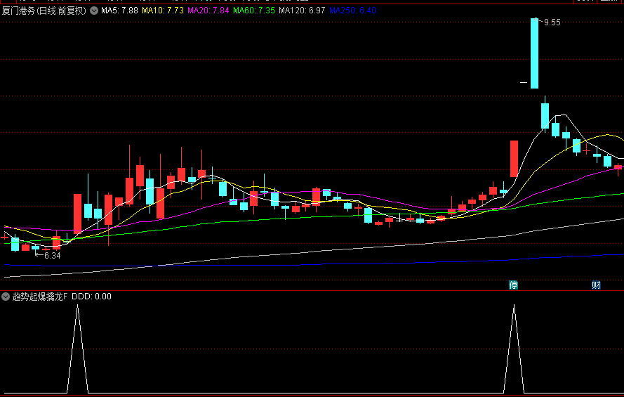 当价格突破揽月线且连续3日站稳时,触发趋势加速信号,符合道氏理论中"次级折返后的主浪突破"特征。