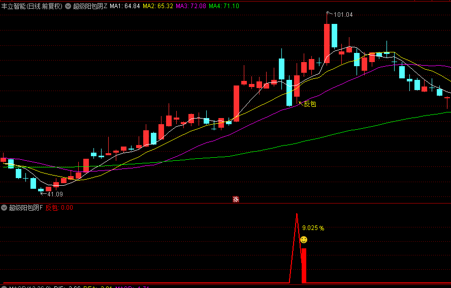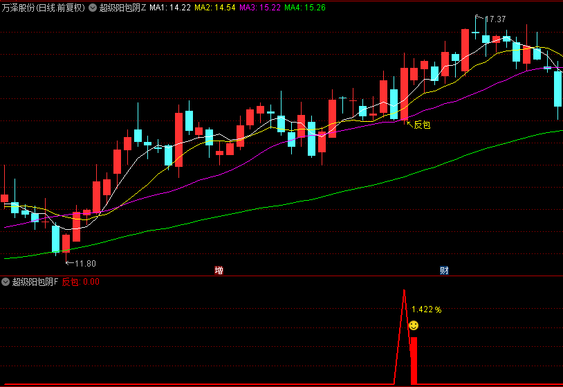 【智能主图】实时标注"↖反包"信号,叠加均线粘合度提示,当四线粘合度<5%时爆发力更强。