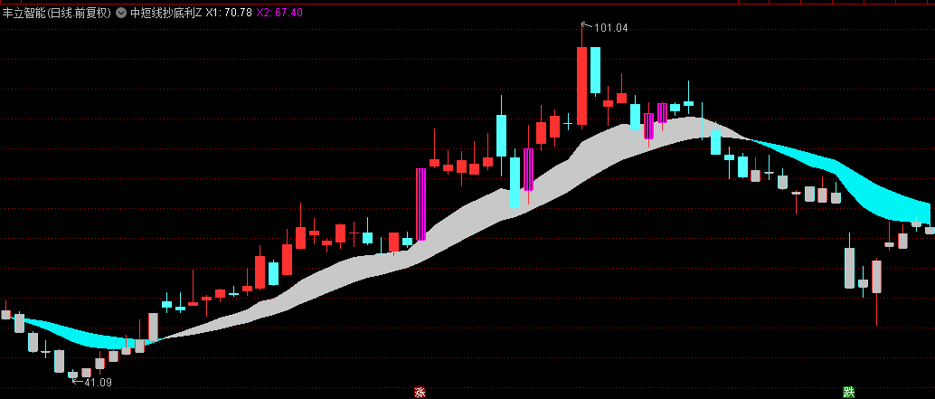 ● 黄K可买入,黄K表示进入了超跌区间,随时反弹可抄底,黄K只在灰色可操作带时才出现。