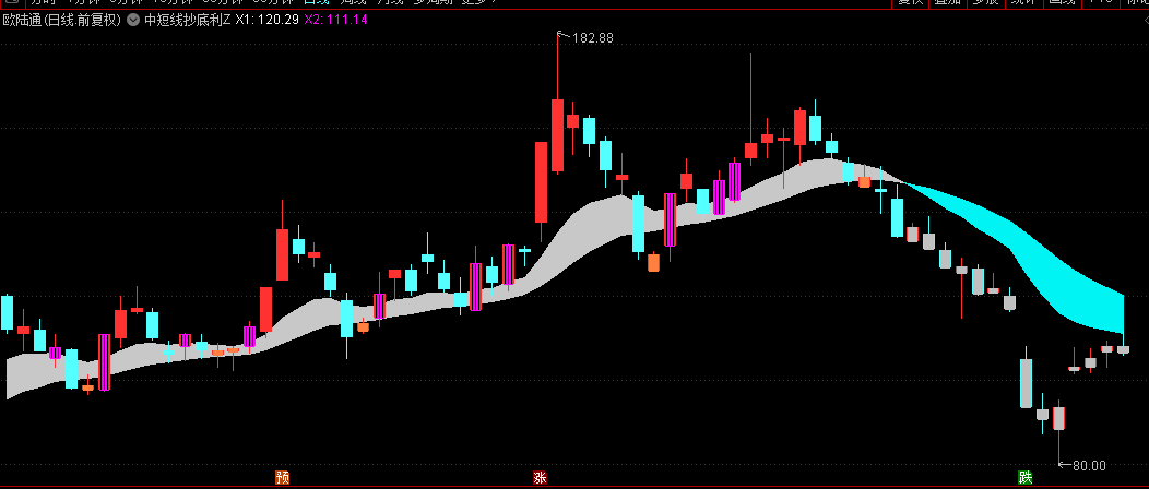 ● 青色带为不可操作区间,在此期间的所有K灰色着色。