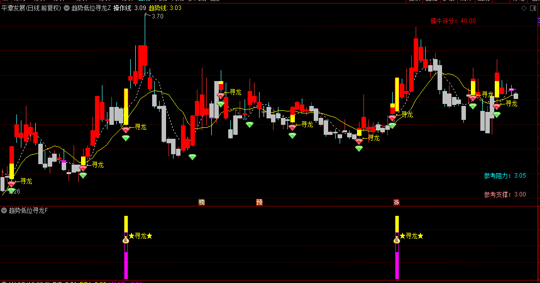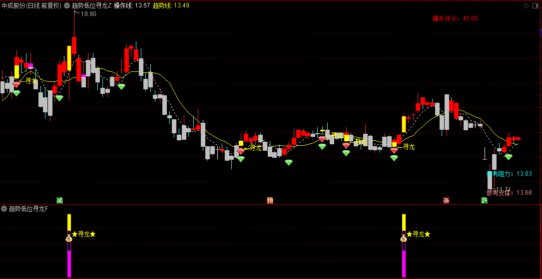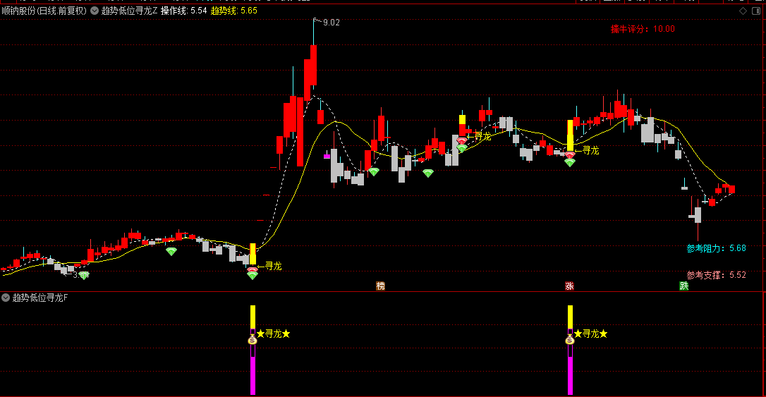 当寻龙信号与成交量放大、技术指标共振等看涨因素共同出现时,副图将强化显示"信号寻龙"提示。