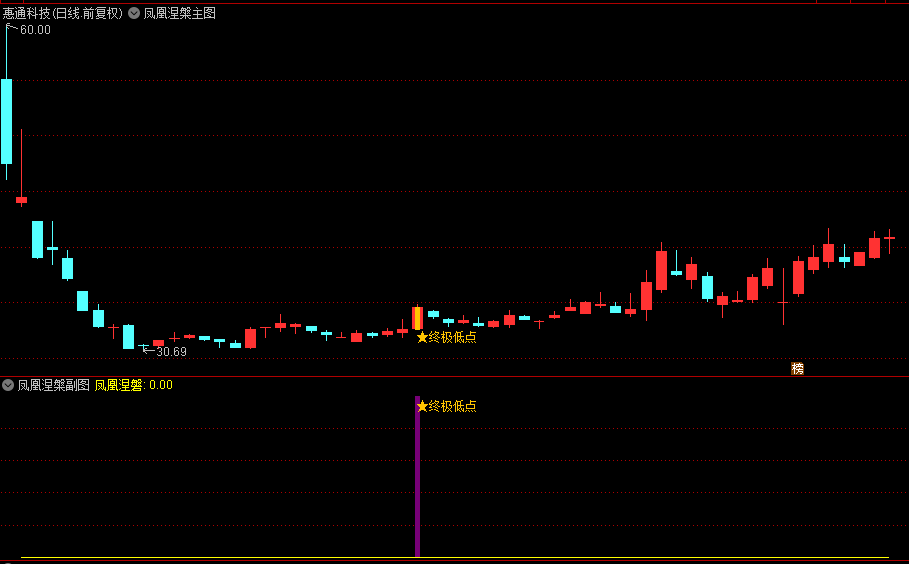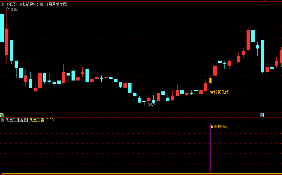 2.副图系统显示"★终极低点"提示,配合红绿能量柱实时监控多空转换。
