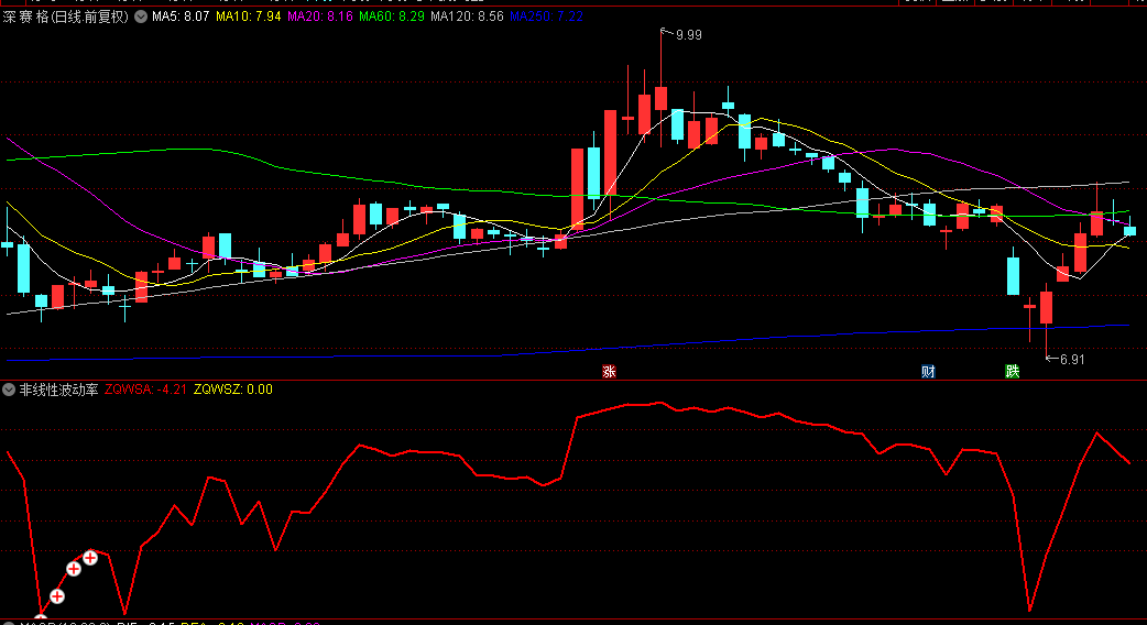 通达信【非线性波动率寻底情绪】副图指标,避免了只看价格波动导致的误判,给趋势分析加个双保险