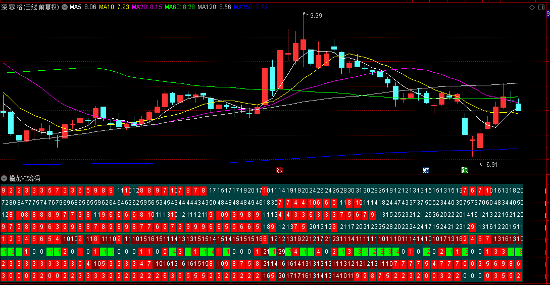 应股友要求重磅发布【擒龙V2筹码】基础版副图指标,进行了排版优化,配合V1基础版使用!