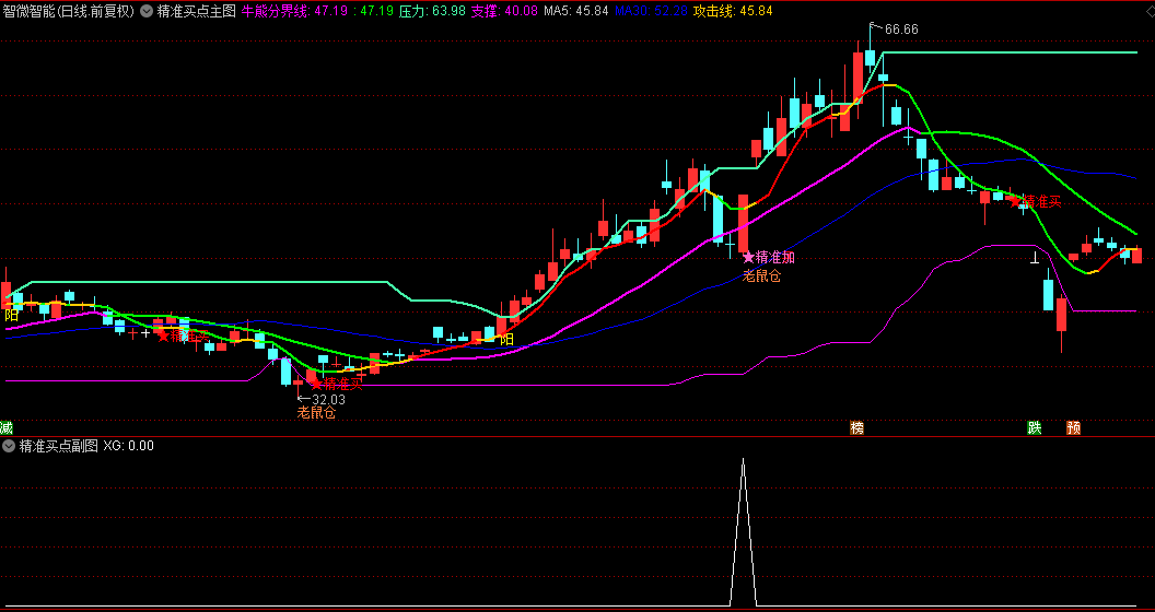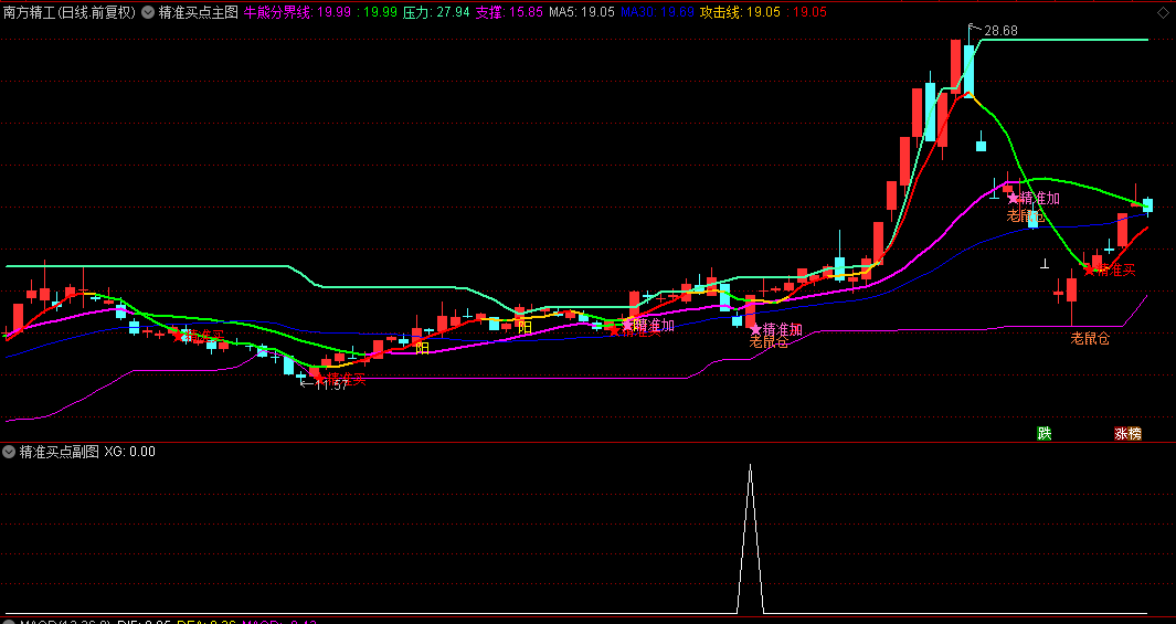为了更精准地判断,我们结合了“老鼠仓”和“精准买”两个抄底指标,只有当它们同时出现时,我们才更有信心确认底部。