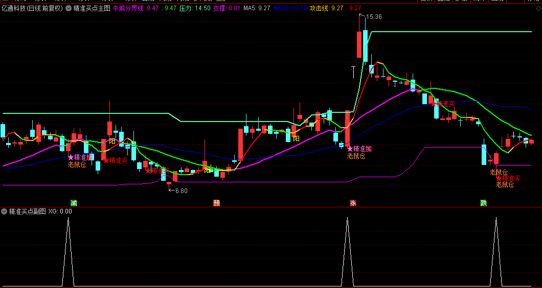 突破时机【精准买点】主图/副图/选股指标,双重共振信号验证,确认趋势底部进场!