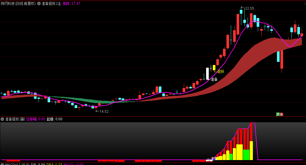 通达信【准备捉妖2】优化版主图/副图/选股指标,采用动态5日线止损+滞涨止盈双保险策略!