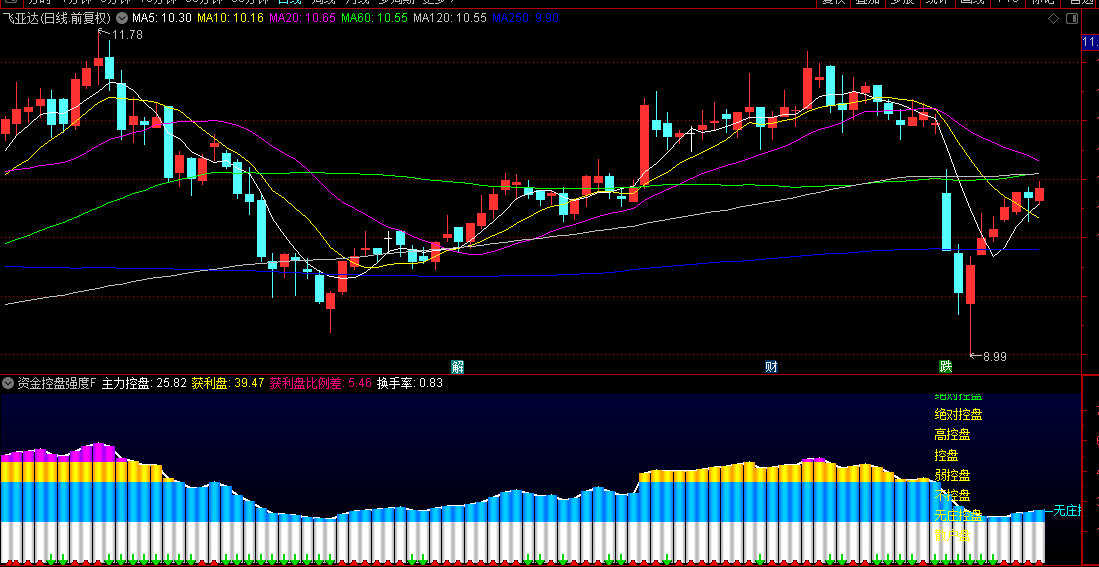1.控盘强度从80%上方快速回落。