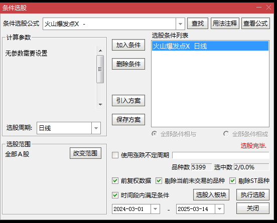 因最近出信号稀少,指标中是10天为周期选股,若只需选出当天个股,则把指标里的10改为1就可以,