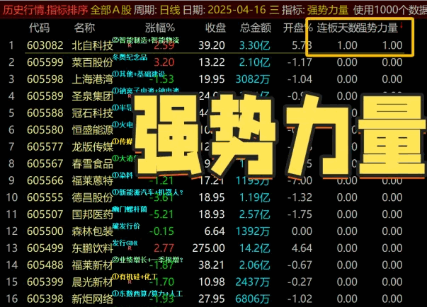 通达信【强势力量竞价选股】竞价排序副图指标,连板接力,筛选强势延续行情的潜力标的!