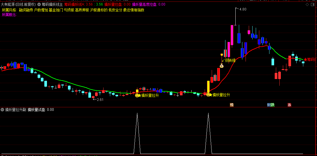 →触发条件:擒妖量信号出现后10日内再现紫色能量柱。