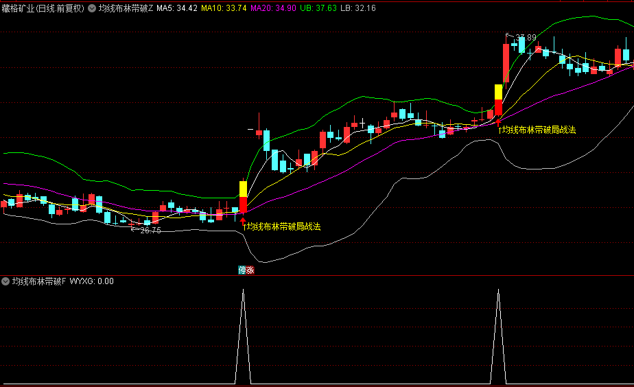 【均线布林带破局战法】主图/副图/选股指标,均线粘合突破+冲破布林带上轨,捉关键转折点