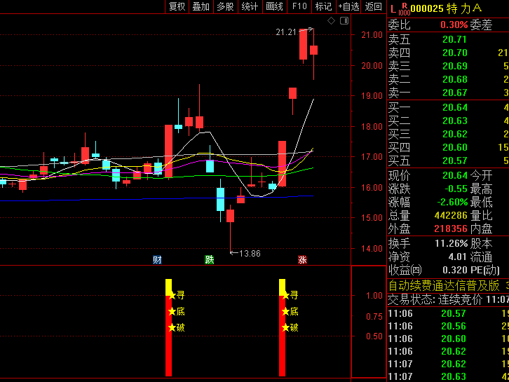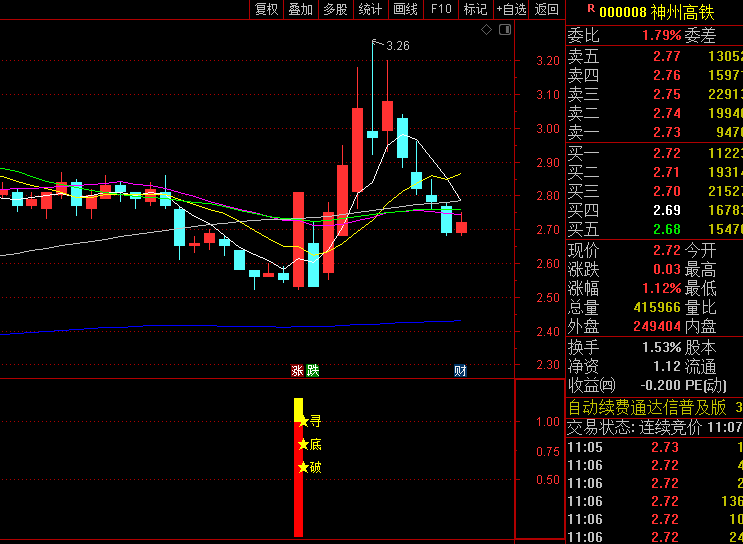 交易系统检测到:短期动态操作线上穿中期动态阻力线;同时阻力线数值<0.15。