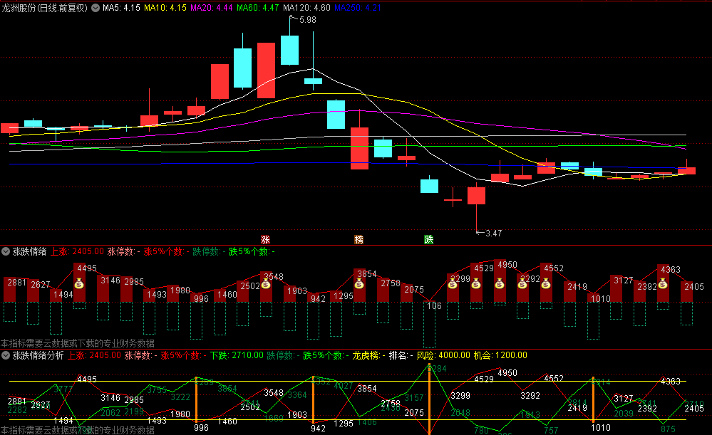 比如上涨数量跌破1000时,往往会形成反弹;上涨数量突破4000支时,往往会迎来快速的回拉。