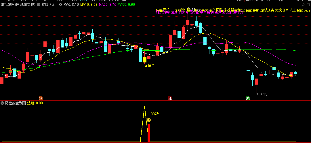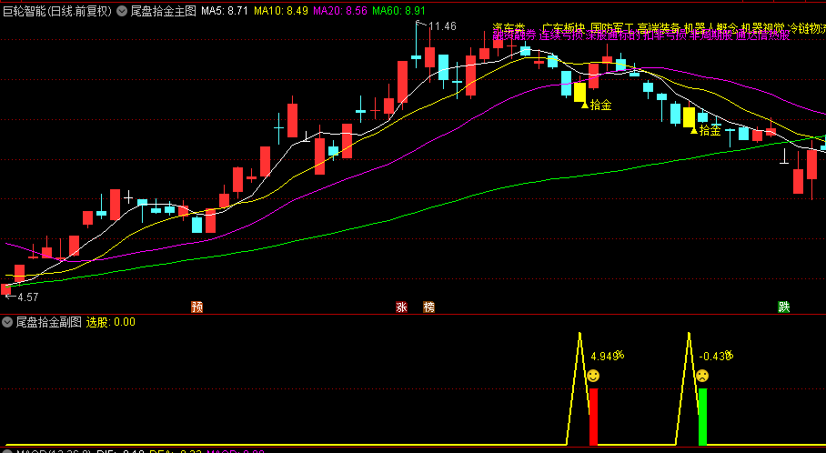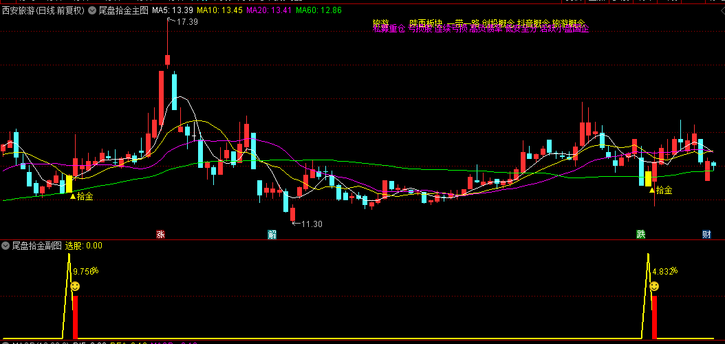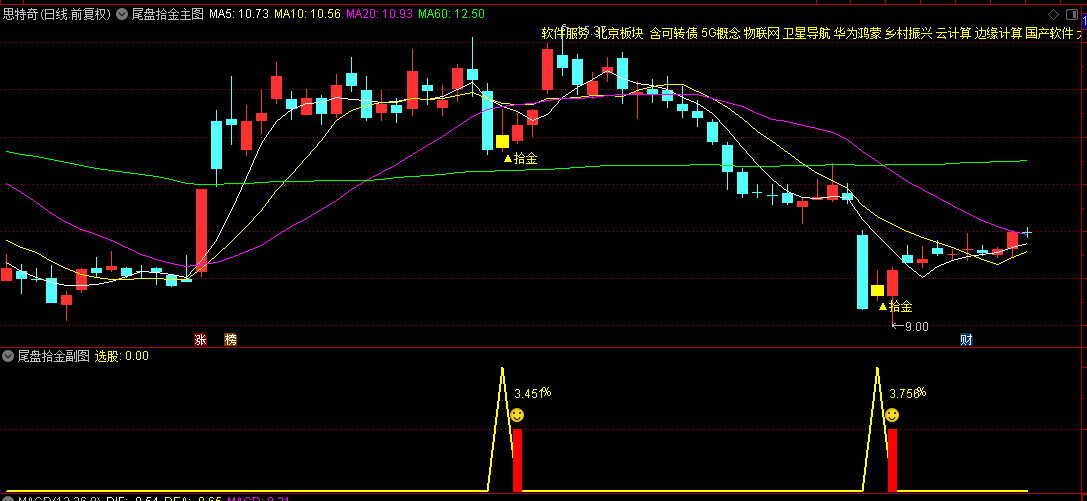 本套【尾盘拾金】指标由三大智能模块构成:主图、副图、尾盘黄金机会选股器。指标含CAPITAL,当前流通股本对近期信号没有影响。