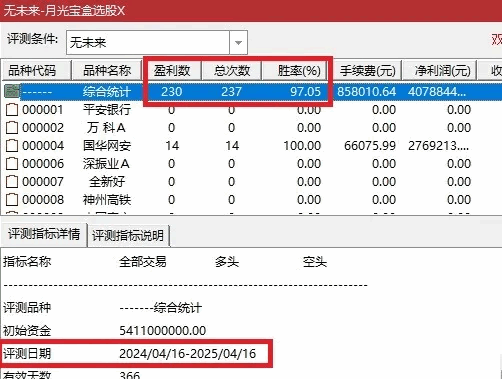 经严格回测验证,采用开盘价建仓策略,近一年交易信号胜率高达97%,确保次日获利概率极大化。具体收益率取决于使用者的交易技巧。