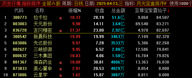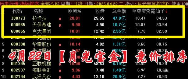 【月光宝盒竞价排序】主图/排序/选股指标,次日几乎都能吃到肉,高胜率竞价低吸选股!