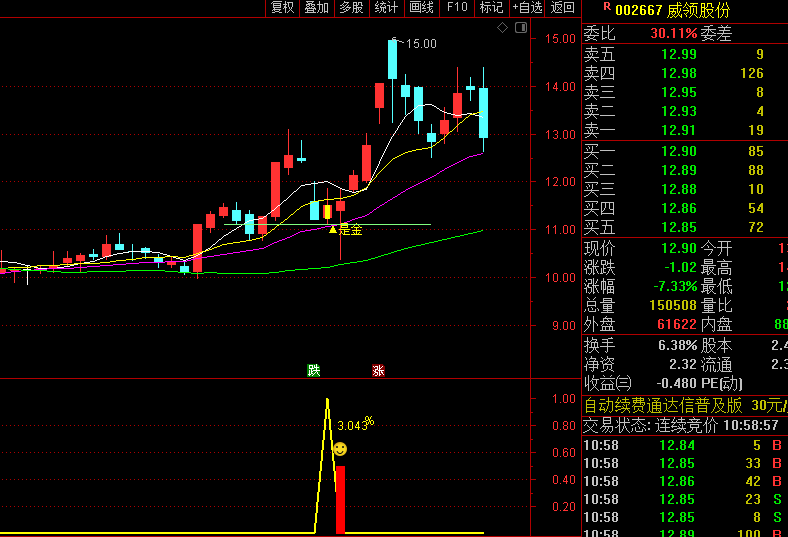 ③波动筛选:上影线长度需达下影线1.5倍。