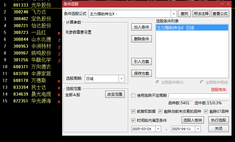 2.选股筛选:用于快速定位主力资金正在强势介入的潜力个股。