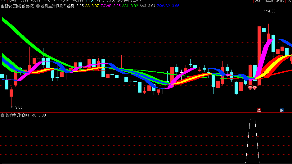 1.中长期成本线:融合5/8/13/21日均价算法,构建平滑趋势轨道。