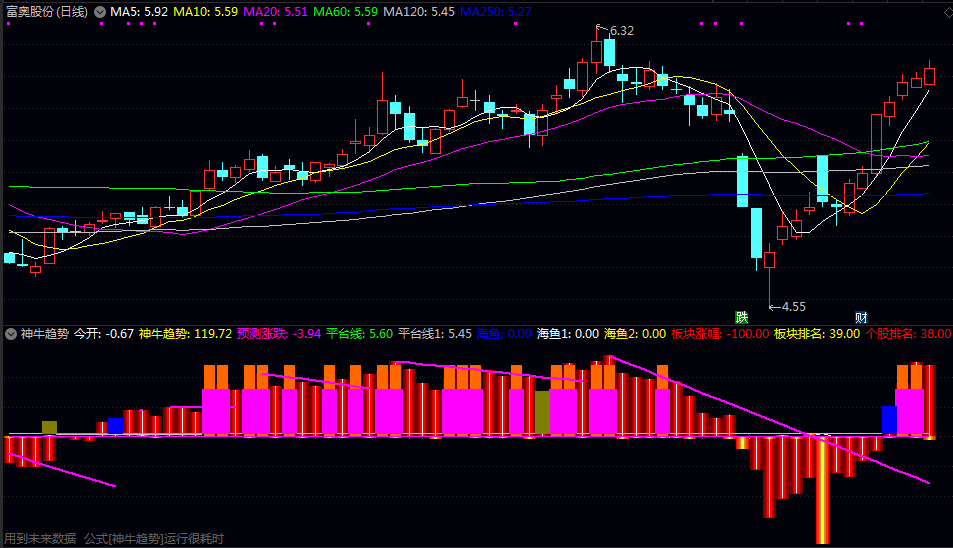 【神牛趋势】副图指标,开盘不变,强势数值都是200以上,还有信号只要在紫线上信号就在