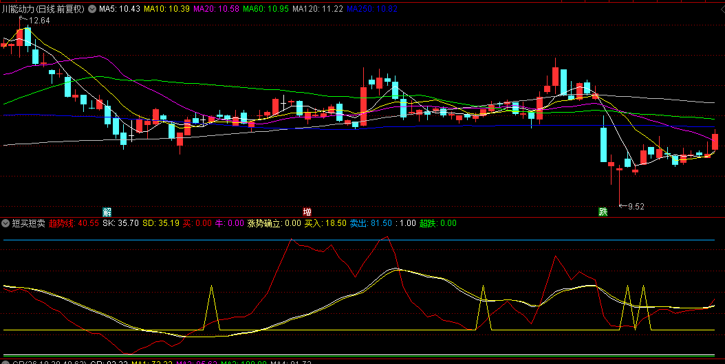 增仓条件:持仓期间出现突破箭头;红色基准线稳定运行于50强弱分界线上方且保持上升态势。