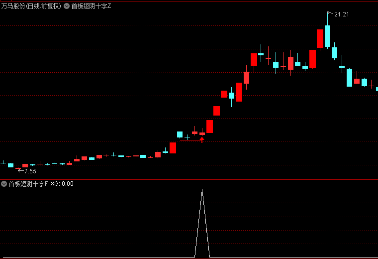 首板短阴十字星是首板之后一种量能和技术走势同步特殊的走势,案例非常少,三个月才4个信号,属于新手法,但是后面都有非常强势的走势,和前面分享过的:首板孕星,选股指标,信号少,但是精准度超级高。不喜勿下!指标不含未来函数!