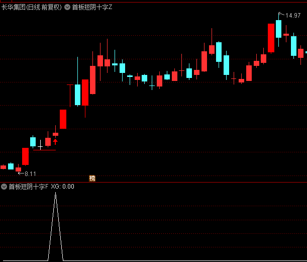 首板之后的次日收阴线,阴线高开幅度不大,实体也不大,而阴线之后,收出十字星,