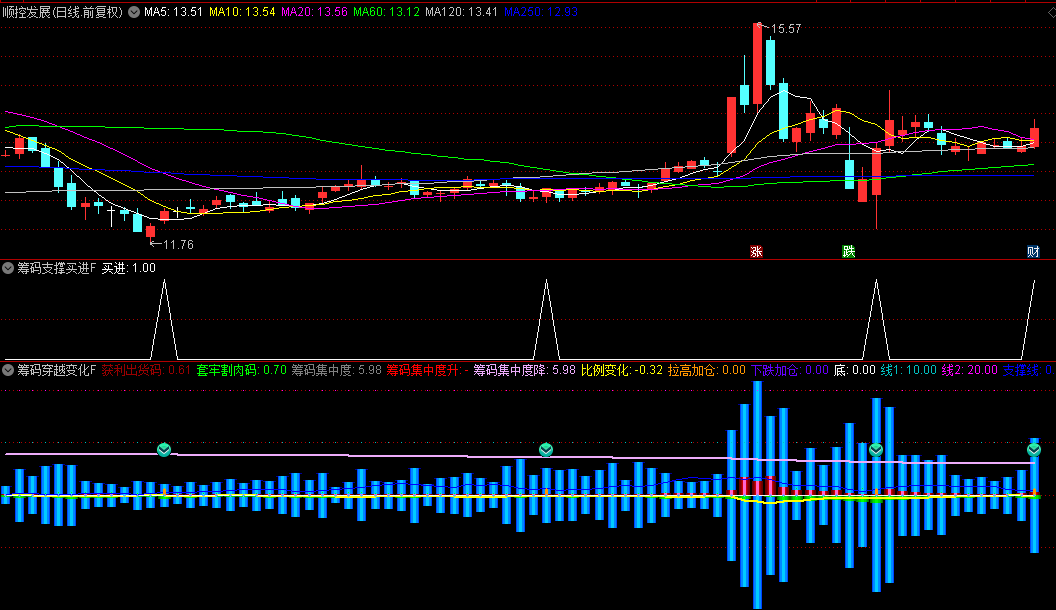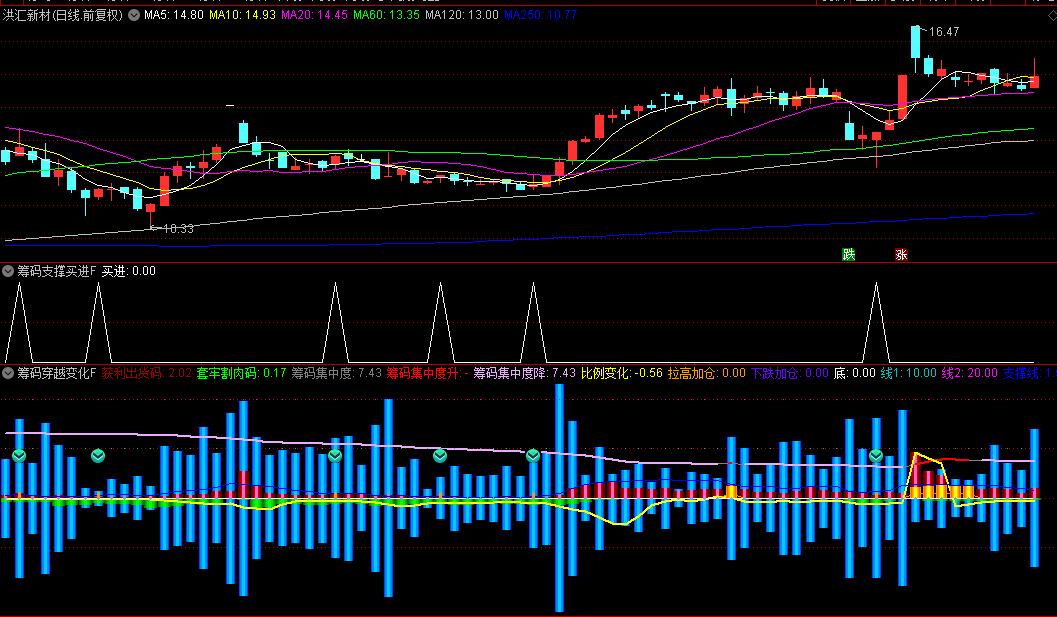 通达信【筹码穿越变化】副图+【筹码支撑买进】副图指标,独特的趋势确认机制,量化筹码密度!