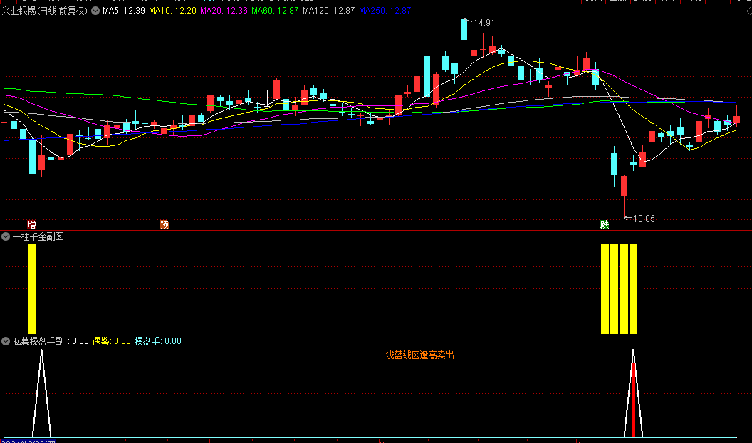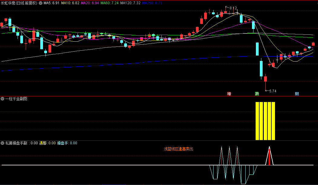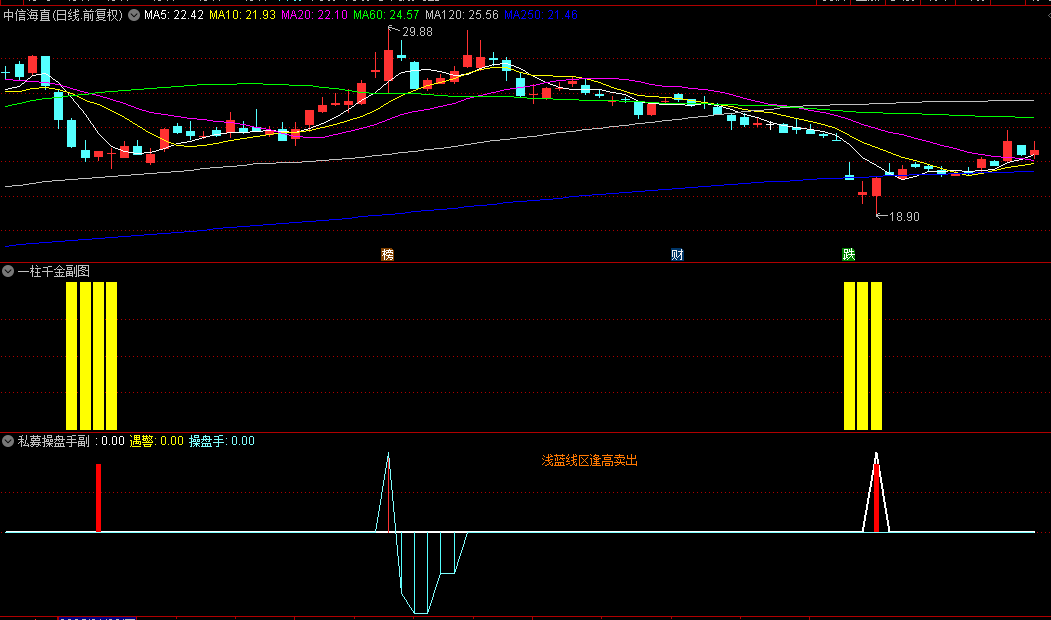 1.卖出信号识别:当私募操盘手指标浅蓝线出现时,需警惕阶段性回调。