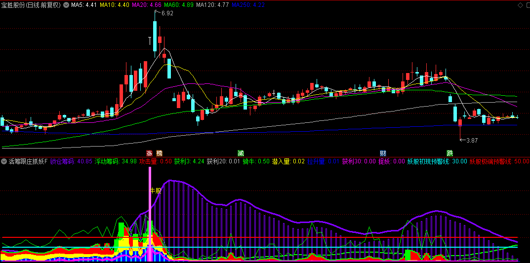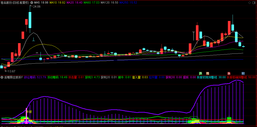 4. 粉色妖股信号:最具价值的粉色活筹立柱出现时,该股有95%以上的概率会成为大牛股,甚至可能演变为市场瞩目的妖股
