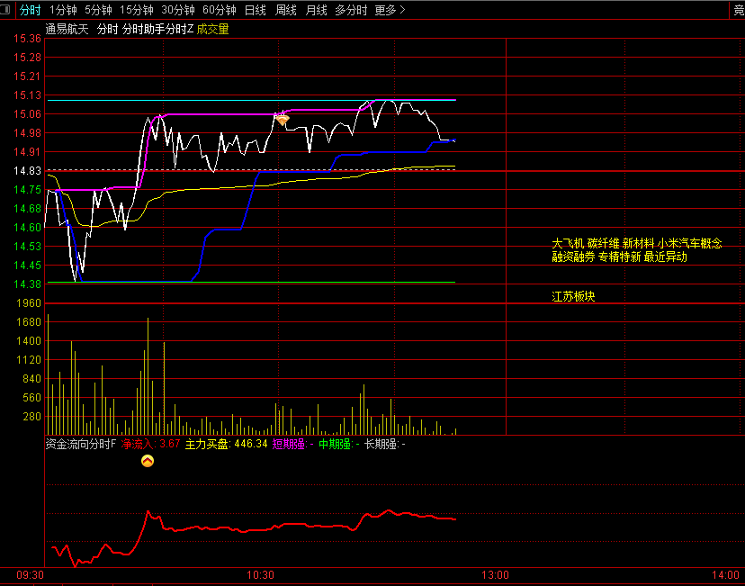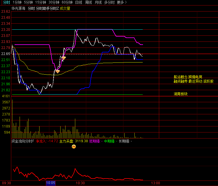 【分时助手】主图和【资金流向】分时幅图指标,突破信号+主力买盘净流入,共振参考!