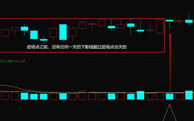 这种模式的逻辑就是强势控盘模式,因为前面首板出现之后,股价破位,破位创出的新低,随后再也没有破过,而且这期间,股价振幅非常小,连长上影和下影都没有,可以说控盘非常漂亮了,启动的标志就是出现了长下影,因为首次出现长下影就意味着开始异动了,这个平衡即将被打破,除非做盘失败,否则一定是向上突破的方式打破平衡。