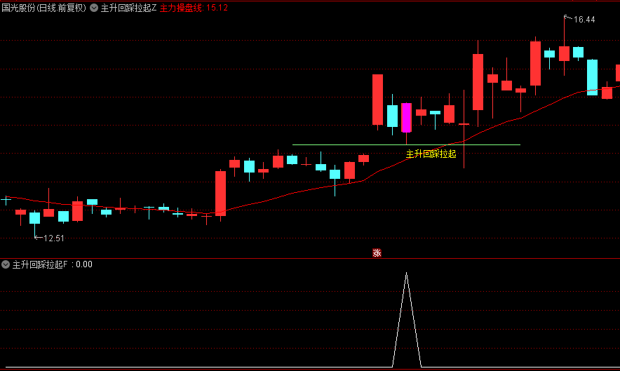 【主升回踩拉起】主图/副图/选股指标,回踩关键支撑位出现企稳迹象,主升浪后的优质回踩买点