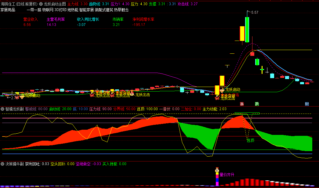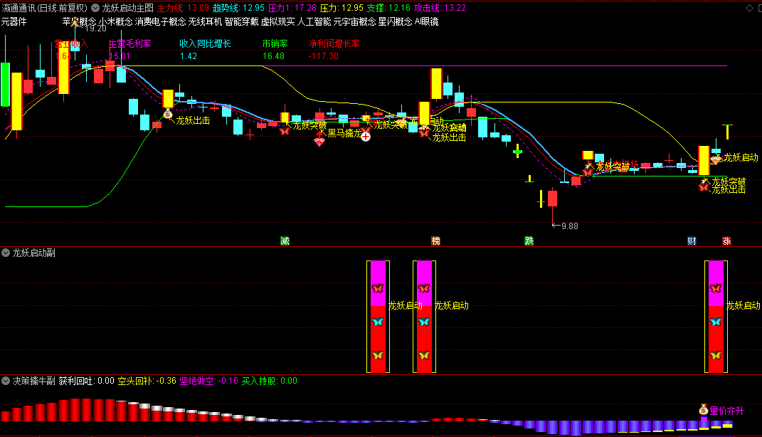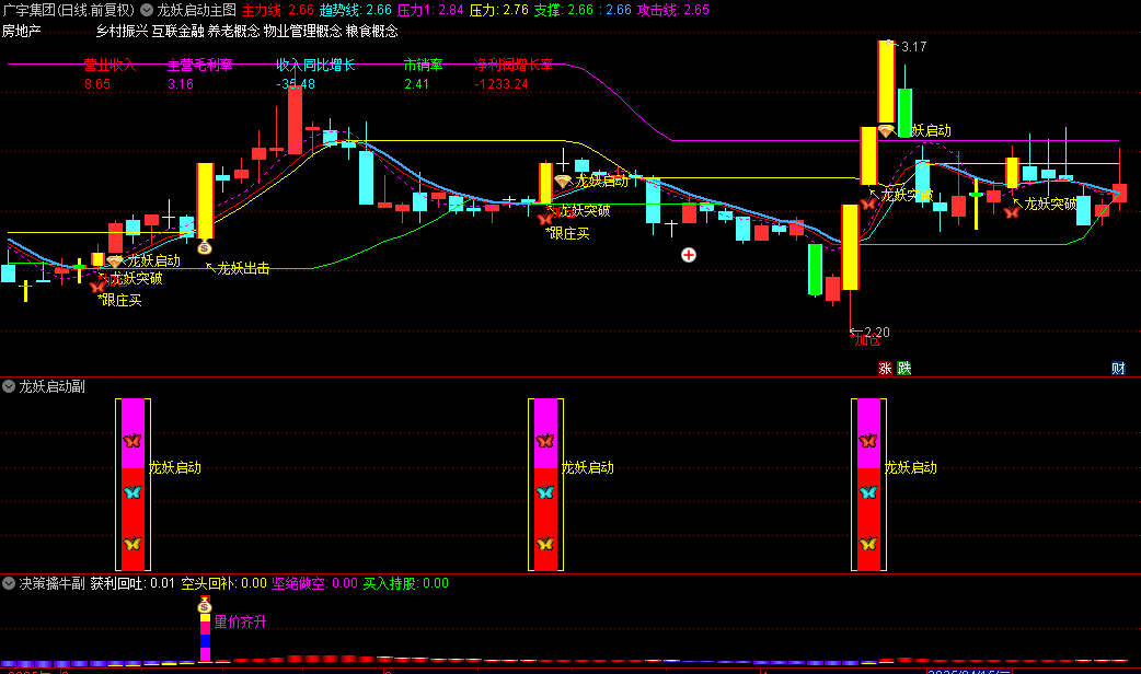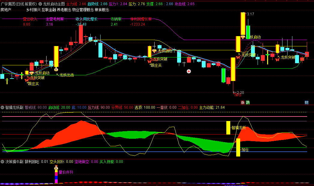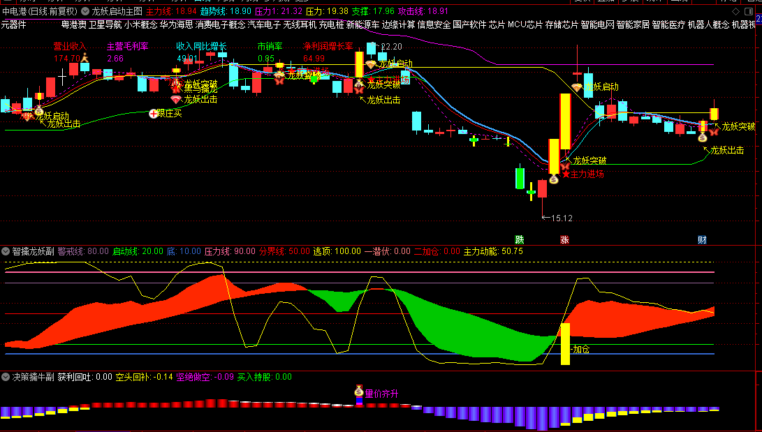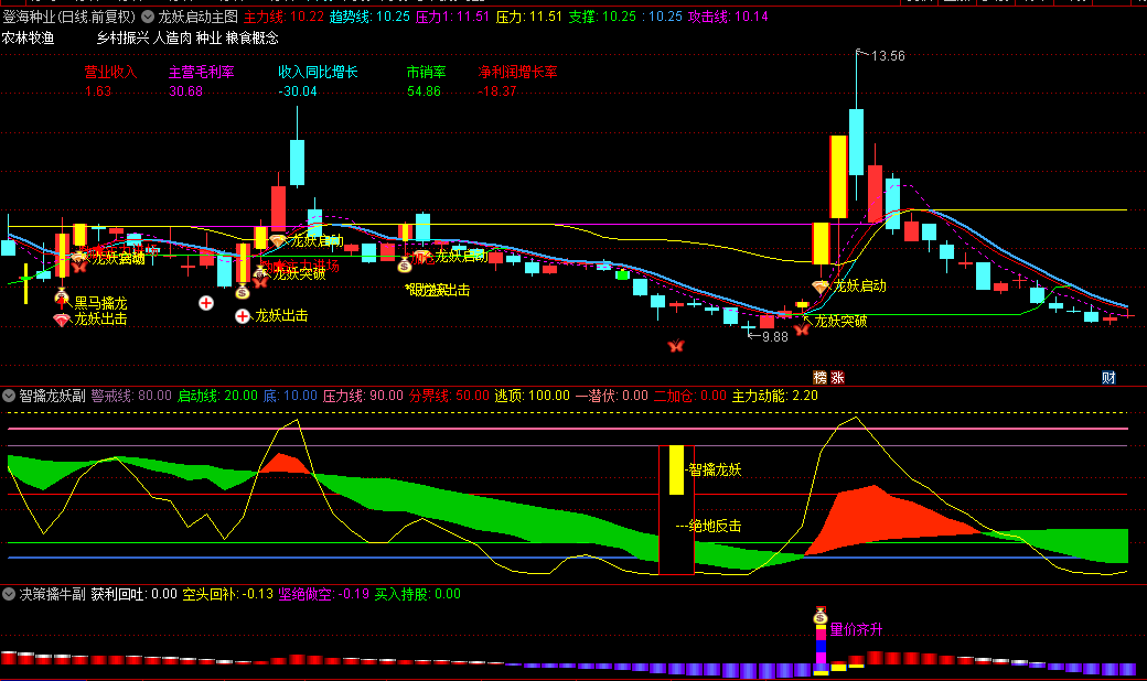 指标特别提供"智擒龙妖"高胜率信号,以及适用于不同行情阶段的"潜伏"与"加仓"提示,帮助投资者在股价低位时把握机会,高位时规避风险。