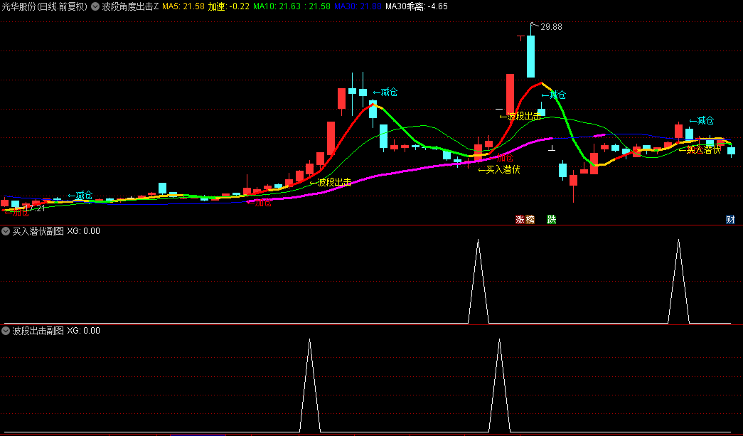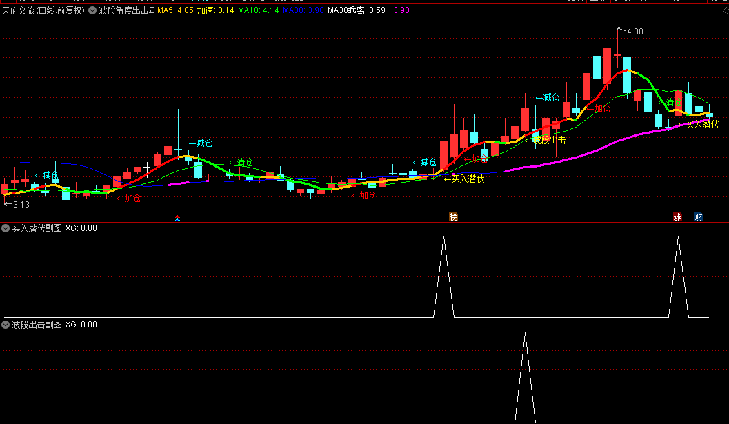 这套独创的指标系统通过多维度均线动力学分析,精准捕捉股价波段转折点,实现"潜伏-出击-加仓-减仓-清仓"全流程可视化提示。该指标不含未来函数!