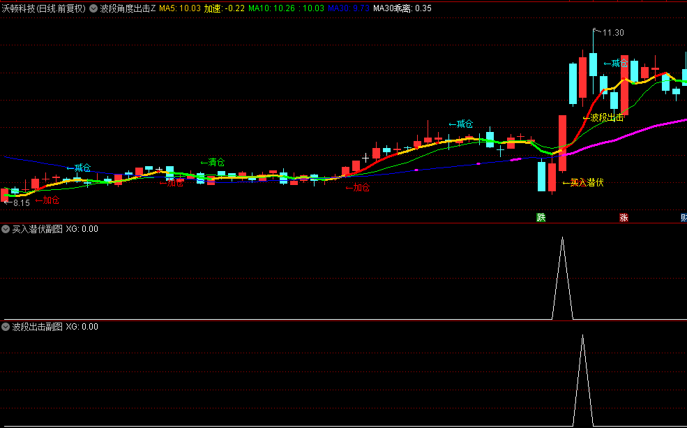 1.黄金买点:当5日线斜率突破60°且30日线斜率30°、10日线斜率45°时触发"波段出击"信号。