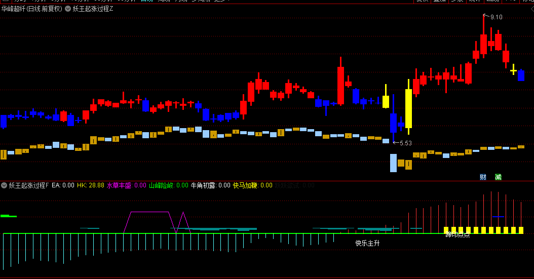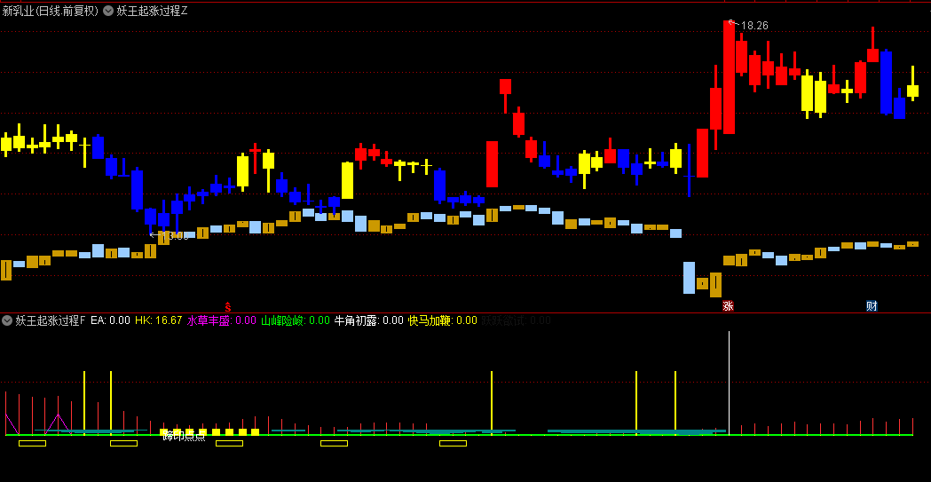 通达信【妖王起涨过程】主图/副图指标,K线形态+量能演变+量峰结构+分时波形+均线排列!