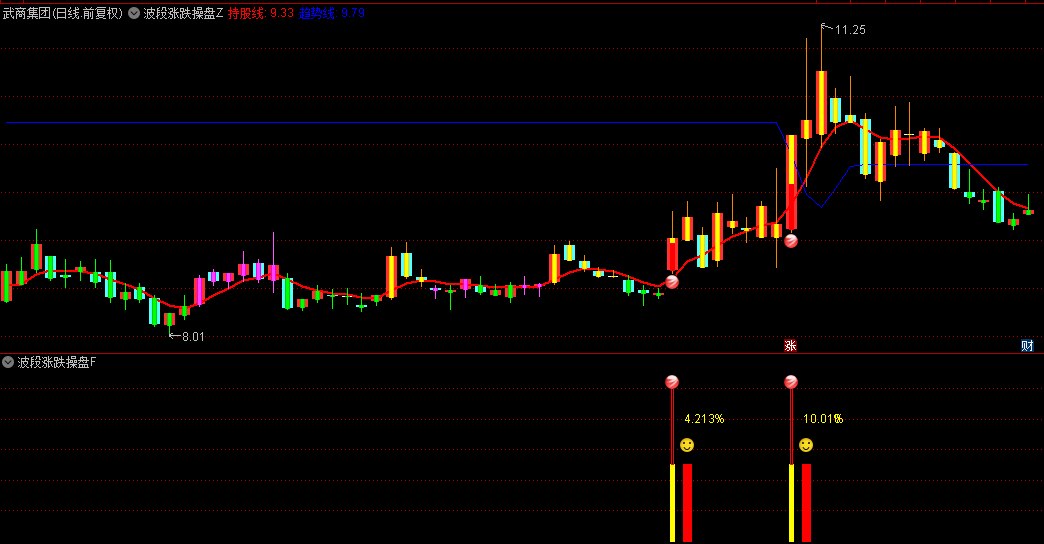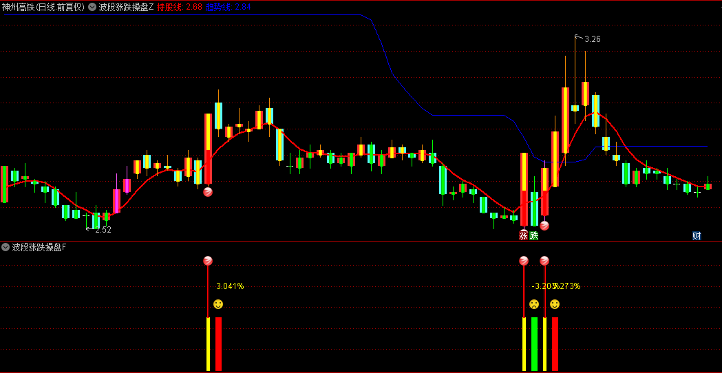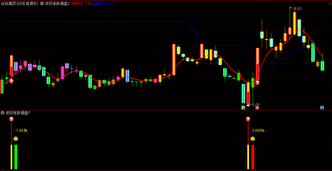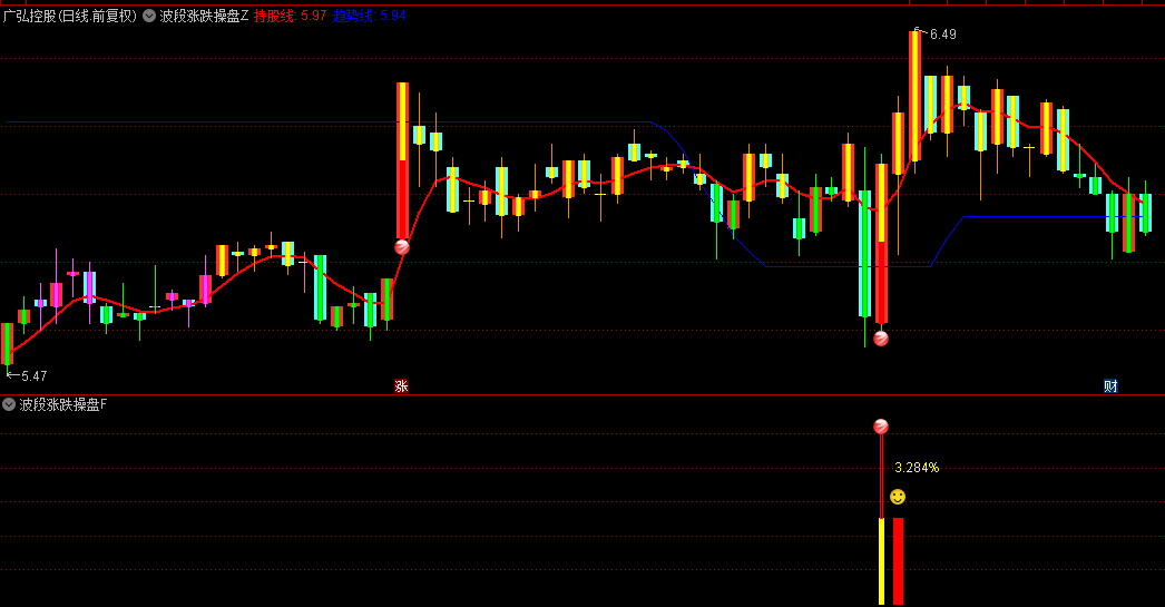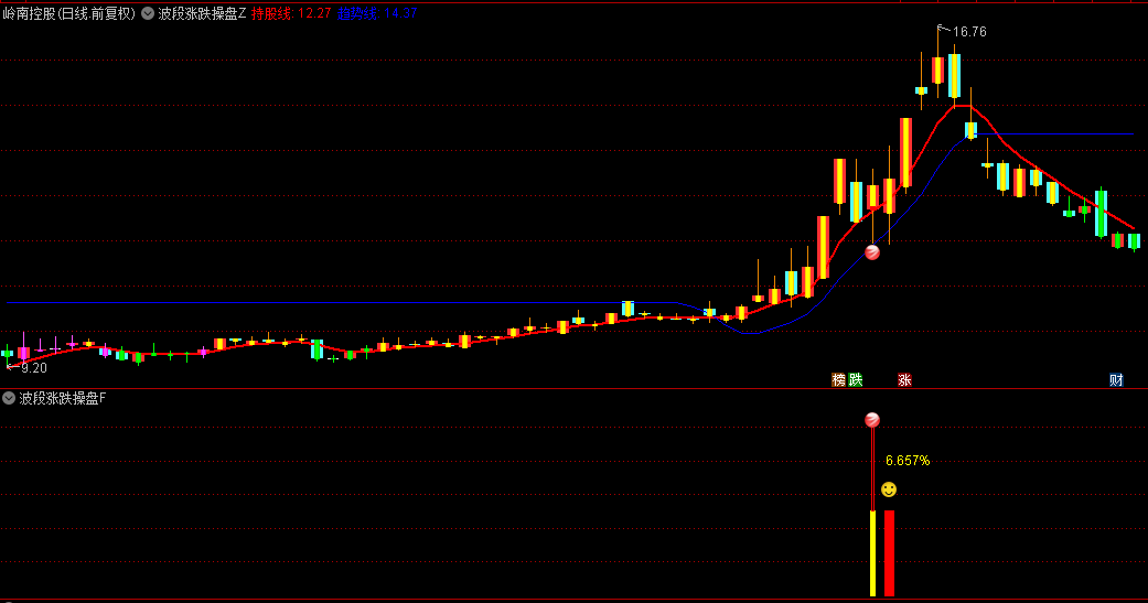 【波段涨跌操盘】主图+副图指标,金色K线是多头强势信号,绿色K线是空头主导信号!