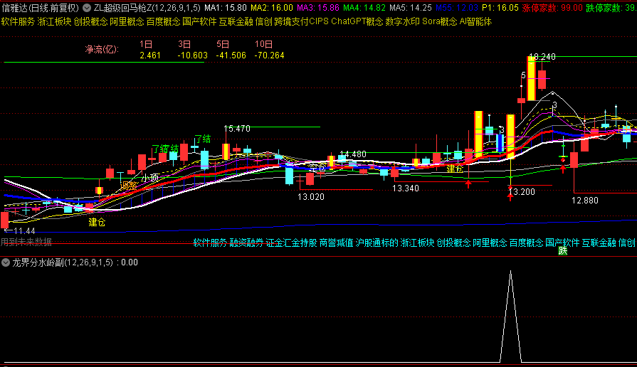 【ZL超级回马枪】主图指标+【龙界分水岭】副图/选股指标,配合5分钟K线确认入场时机
