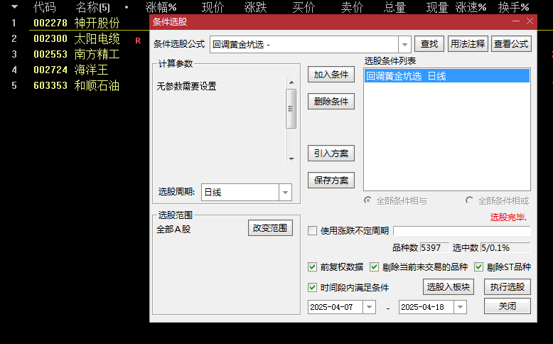 精准的尾盘选股是“反弹猎手”使用的核心,目的是在当日市场接近收盘时精选那些有潜力在接下来的3到5个交易日内实现反弹的股票。