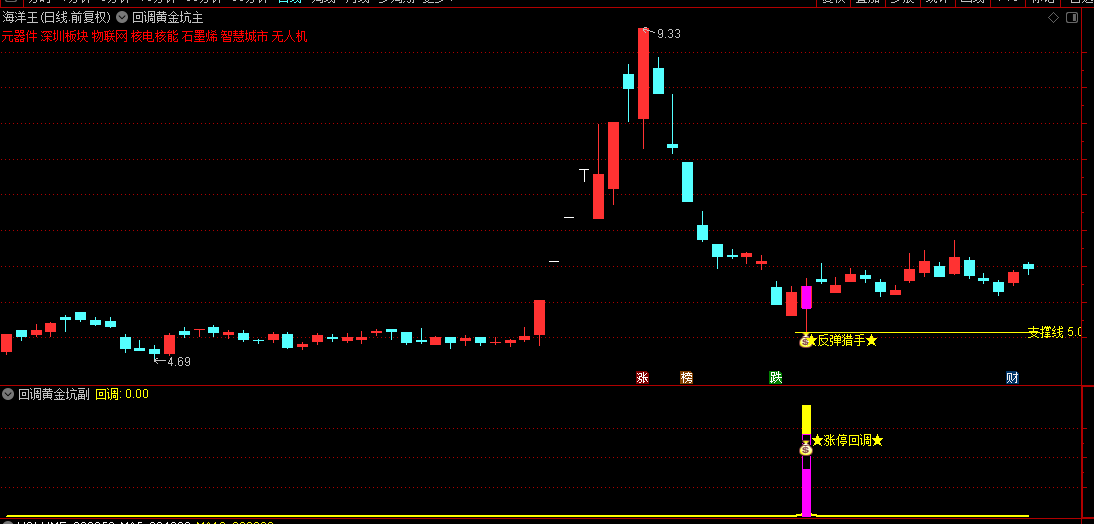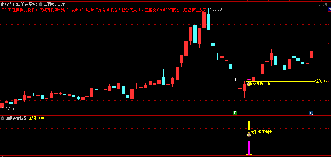 当指标在副图中发出信号时指出了明确的买入时机。此外,通过对涨停板回调股票的细致筛选,该指标能够帮助投资者抓住那些在经历短期调整后有望再度强势上涨的股票。