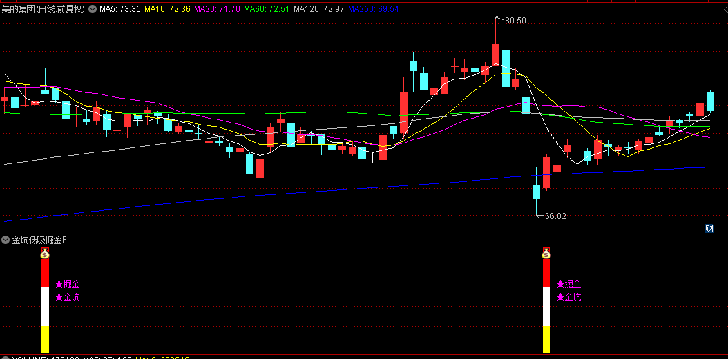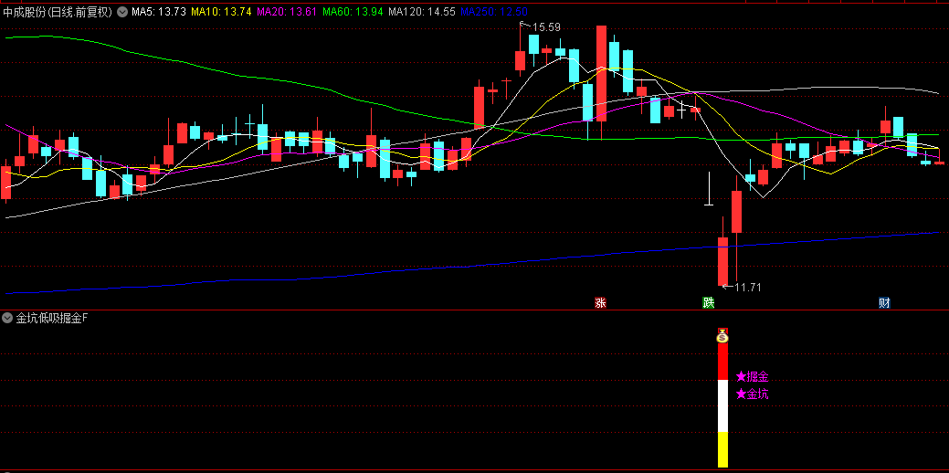 此时指标会触发"黄金坑"信号,提示最佳低吸时机。