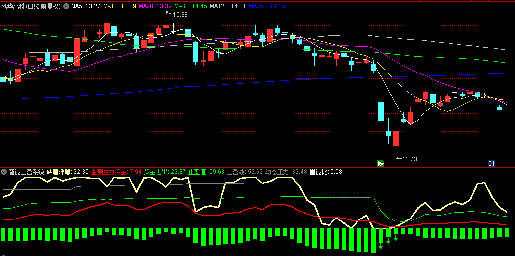 2.威廉浮筹线:对原始浮筹数据进行14周期标准化处理,通过彩色粗线突显筹码分布的极值区域。